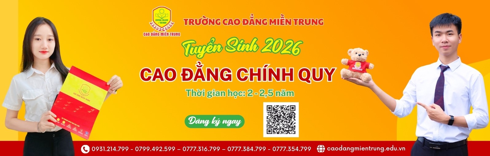 Trường Cao đẳng Miền Trung tuyển sinh hệ Cao đẳng với nhiều ngành đào tạo mũi nhọn. Chương trình được xây dựng theo chuẩn quốc gia, chú trọng thực hành và gắn kết chặt chẽ với doanh nghiệp, mang đến cho sinh viên cơ hội học tập hiệu quả và việc làm bền vững sau tốt nghiệp.