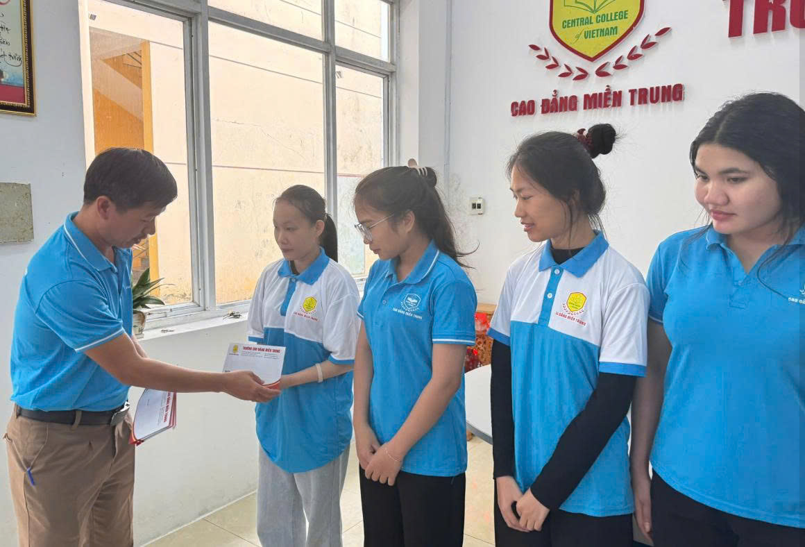 Trước những thiệt hại do thiên tai gây ra tại khu vực miền Trung, Trường Cao đẳng Miền Trung đã nhanh chóng rà soát và triển khai các phương án hỗ trợ sinh viên. Trong đợt 1 này, nhà trường đã trao tổng cộng 17 suất quà (bao gồm tiền mặt trao trực tiếp và hình thức chuyển khoản) đến tận tay những sinh viên có hoàn cảnh khó khăn nhất.