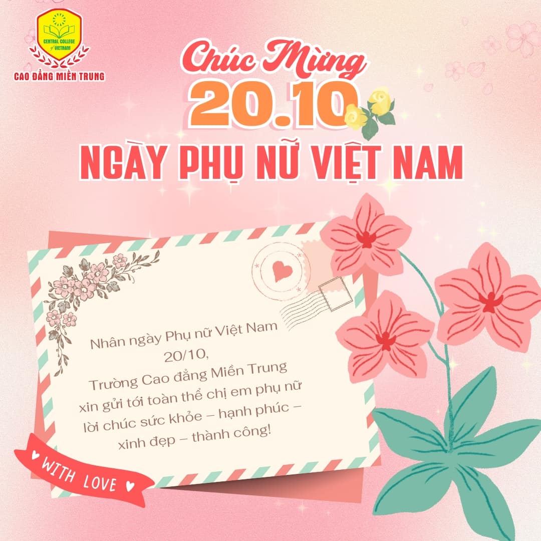 Nhân ngày Phụ nữ Việt Nam, Trường Cao đẳng Miền Trung xin gửi đến toàn thể chị em phụ nữ – cán bộ, giảng viên, nhân viên và sinh viên lời chúc sức khỏe, hạnh phúc, xinh đẹp và thành công!