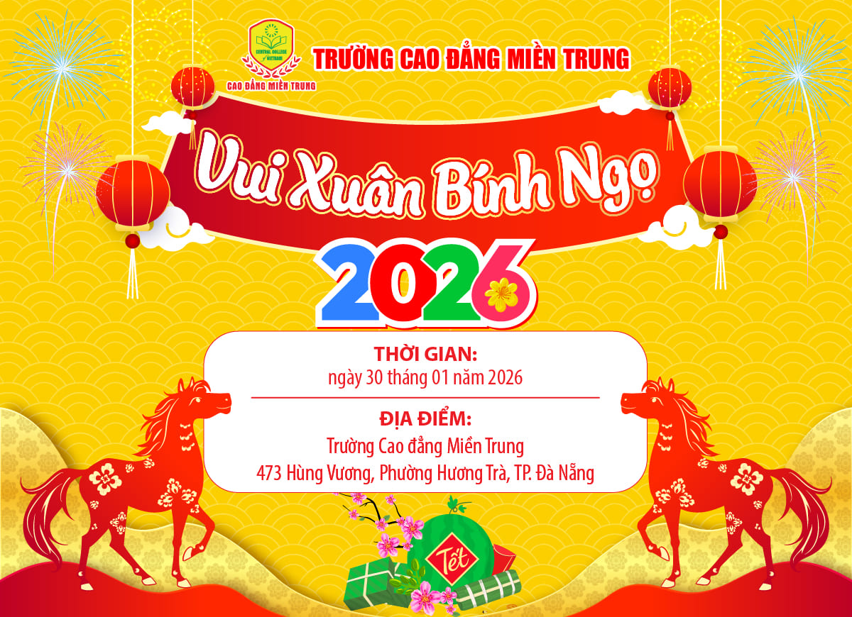 Khi những cơn gió se lạnh cuối năm khẽ chạm ngõ, khi sắc xuân bắt đầu len lỏi trên từng con phố, đó cũng là lúc không khí Tết cổ truyền rộn ràng khắp nơi. Trong niềm hân hoan chào đón năm mới Bính Ngọ 2026, Trường Cao đẳng Miền Trung trân trọng tổ chức chương trình Vui Xuân Bính Ngọ 2026 – một sự kiện ý nghĩa, ấm áp, mang đậm hồn Tết Việt dành cho toàn thể thầy cô, cán bộ – nhân viên và các bạn sinh viên.
