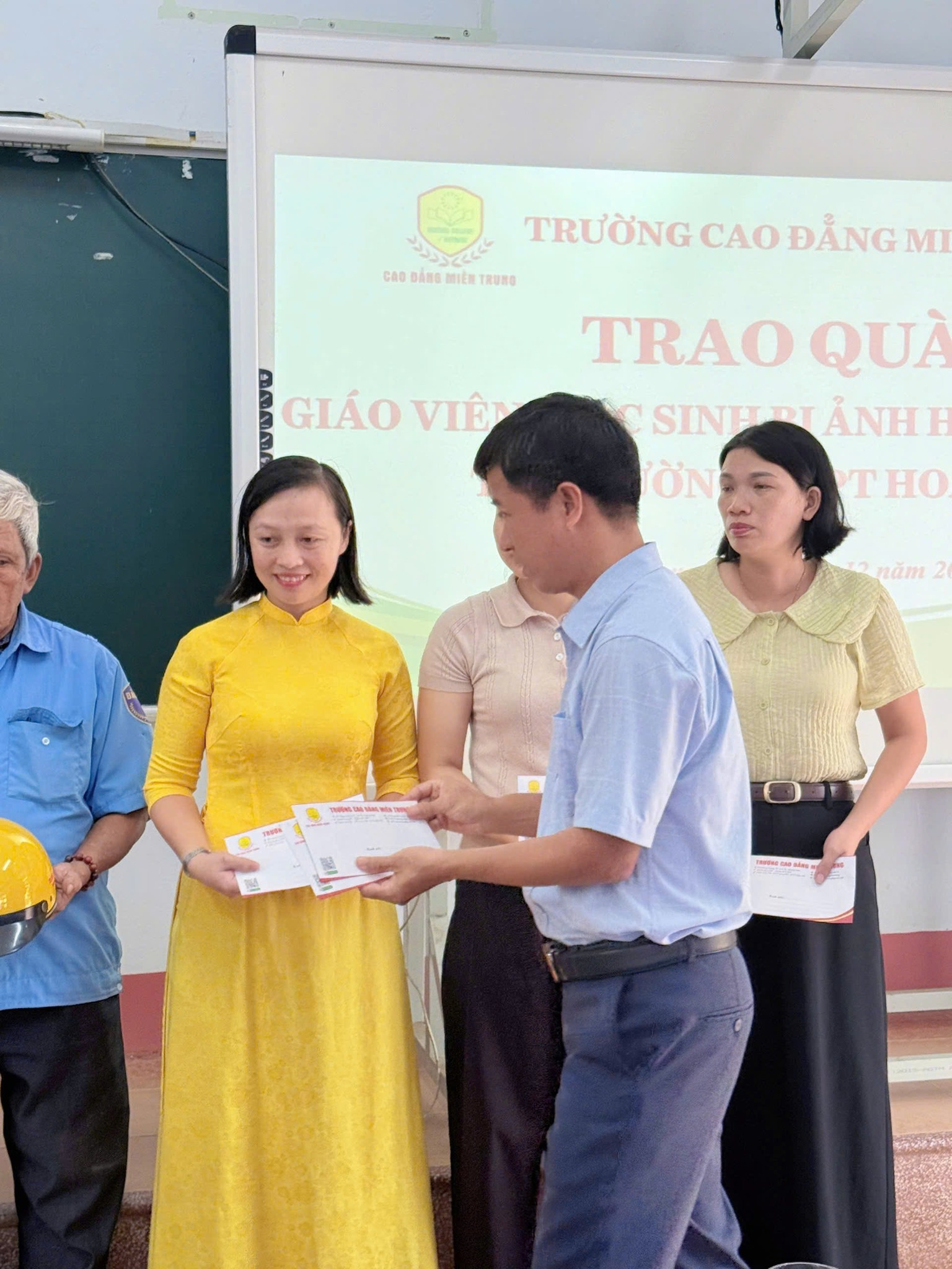 Những ngày sau lũ, nhiều thầy cô và học sinh vẫn đang nỗ lực khắc phục khó khăn: nhà cửa bị ngập, sách vở và đồ dùng học tập bị hư hỏng, cuộc sống sinh hoạt đảo lộn. Thấu hiểu những mất mát ấy, Trường Cao đẳng Miền Trung đã kịp thời chuẩn bị các phần quà thiết thực, gửi đến từng giáo viên và học sinh như một lời động viên chân thành, chung tay sẻ chia cùng địa phương vượt qua giai đoạn khó khăn.