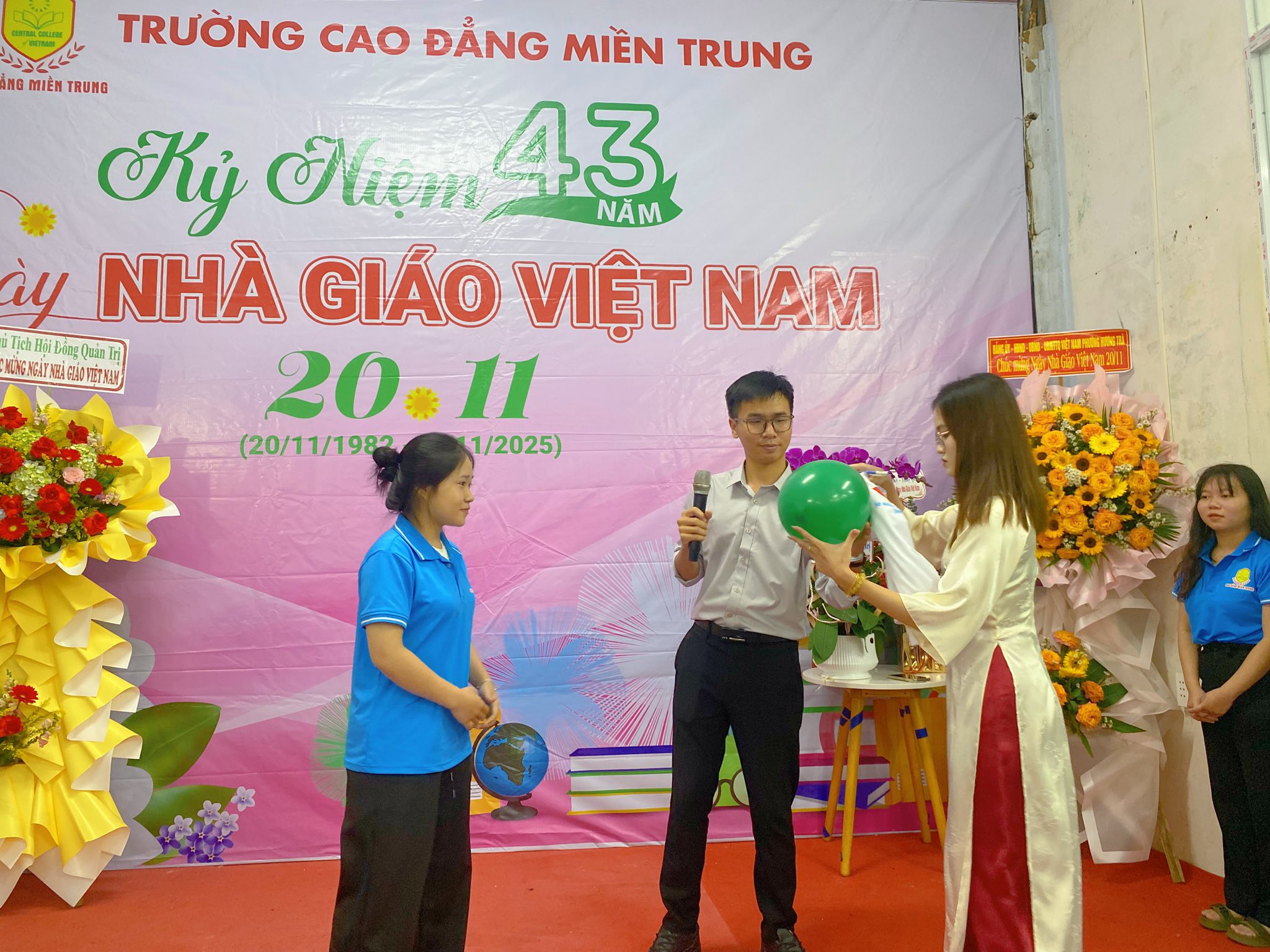 Sáng nay, Trường Cao đẳng Miền Trung đã tổ chức buổi lễ kỷ niệm 43 năm Ngày Nhà giáo Việt Nam (20/11/1982 – 20/11/2025) trong không khí trang trọng mà ấm áp. Đây là dịp đặc biệt để chúng ta tri ân những người thầy, người cô đã dành trọn tâm huyết và nhiệt thành cho sự nghiệp “trồng người”.