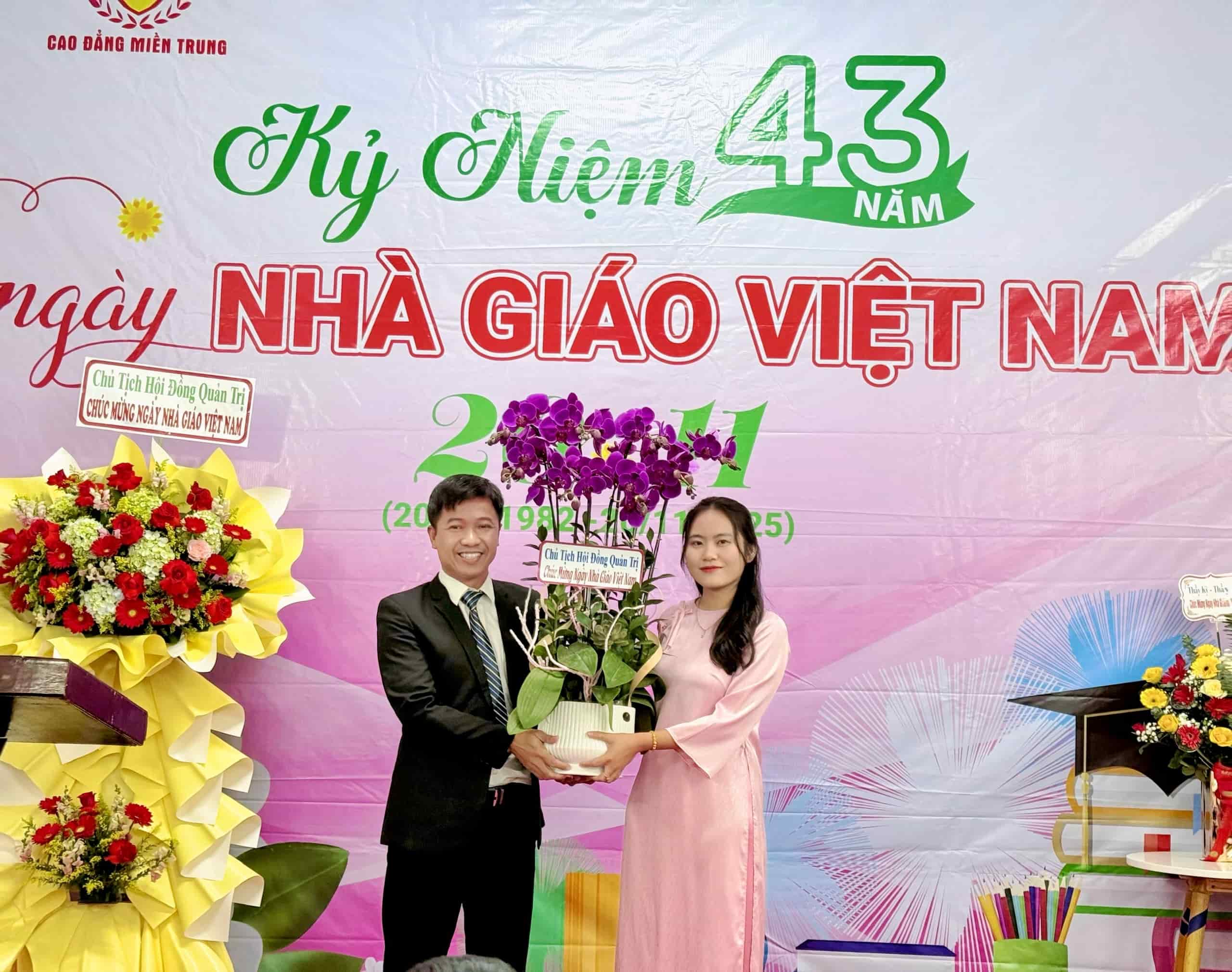 Nhân dịp ngày lễ trọng đại tôn vinh nghề giáo, TS. Lê Lâm đã gửi tặng lẵng hoa tươi thắm cùng những phần quà ý nghĩa đến Ban Giám hiệu và toàn thể cán bộ, giảng viên, nhân viên Trường Cao đẳng Miền Trung.