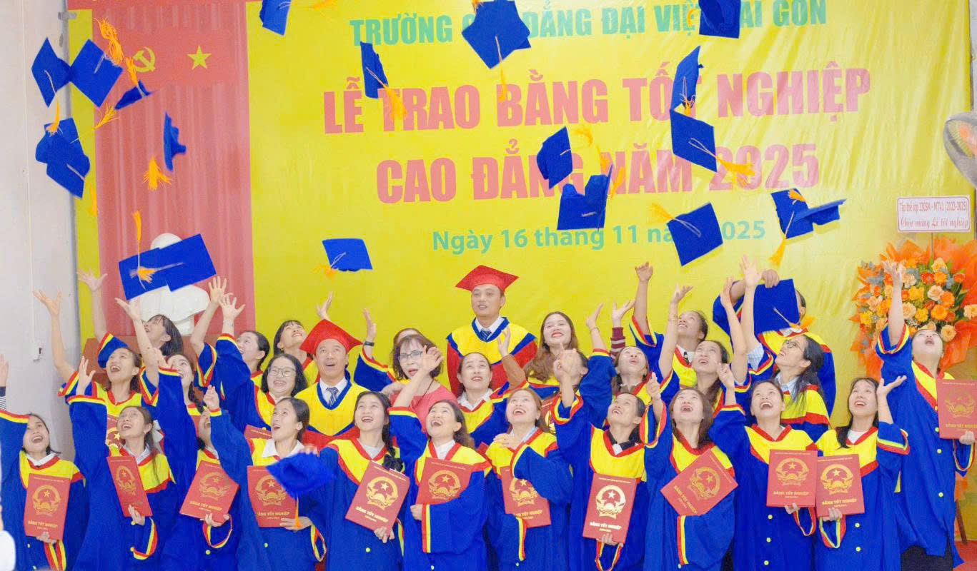 Sáng ngày 16 tháng 11 năm 2025, một sự kiện vô cùng ý nghĩa và trang trọng đã diễn ra tại Cơ sở liên kết Trường Cao đẳng Đại Việt Sài Gòn: Lễ Trao Bằng Tốt Nghiệp 2025. Đây là buổi lễ đánh dấu sự kết thúc chặng đường học tập đầy nỗ lực và cố gắng, đồng thời mở ra một hành trình mới đầy hứa hẹn cho hàng trăm tân khoa tốt nghiệp.
