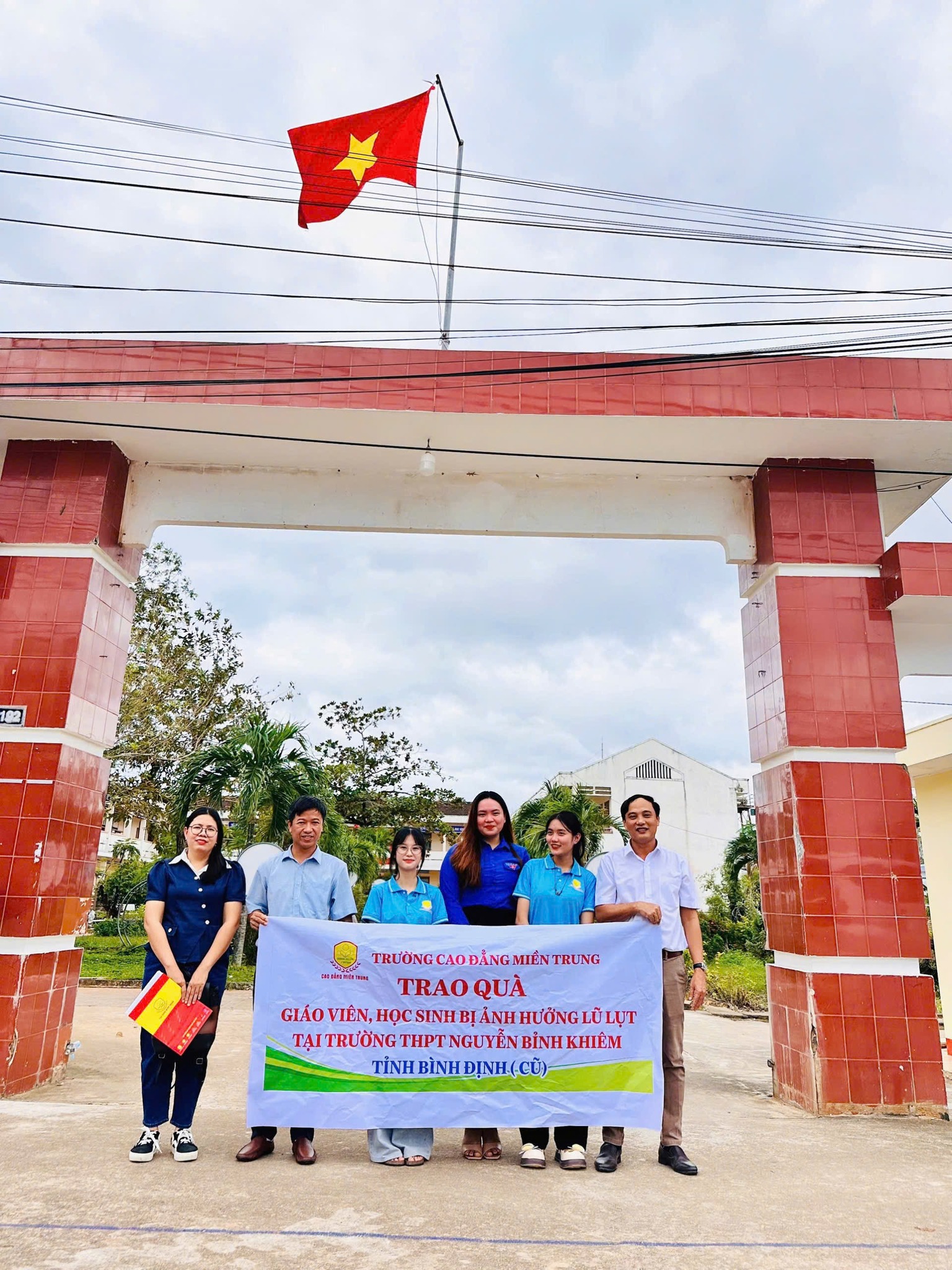 Sáng ngày 01/12, đoàn công tác của Trường Cao đẳng Miền Trung đã đến thăm và trao quà hỗ trợ cho giáo viên, học sinh Trường THPT Nguyễn Bỉnh Khiêm và THPT Hoài Ân – những điểm trường chịu ảnh hưởng nặng nề sau đợt lũ vừa qua tại huyện Hoài Ân.